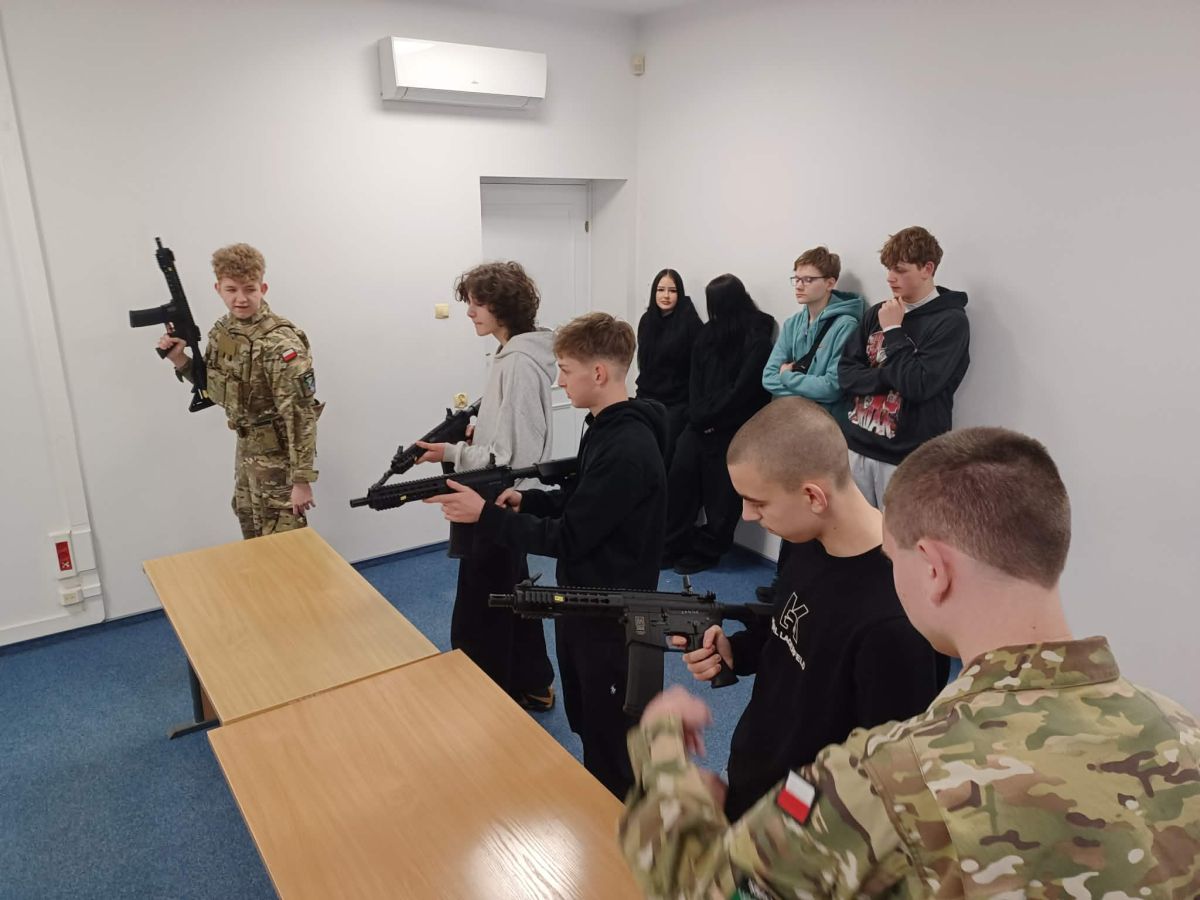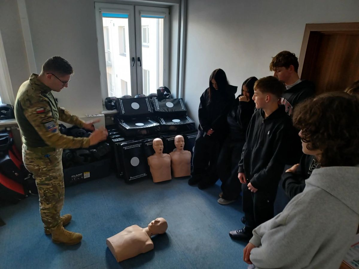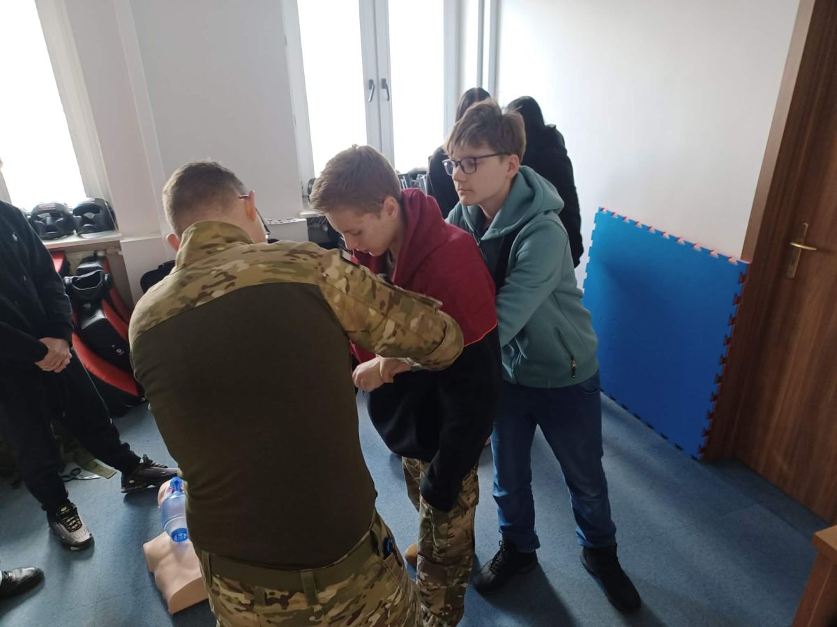 Uczniowie kl. VIII a uczestniczyli w ciekawych zajęciach dotyczących treści z zakresu edukacji dla bezpieczeństwa, które odbyły się w I Liceum Ogólnokształcącym CN-B w Kielcach. Zajęcia zostały zrealizowane w formie teoretyczno - praktycznej i obejmowały zarówno zagadnienia z zakresu pierwszej pomocy, jak i elementy przygotowania strzeleckiego.