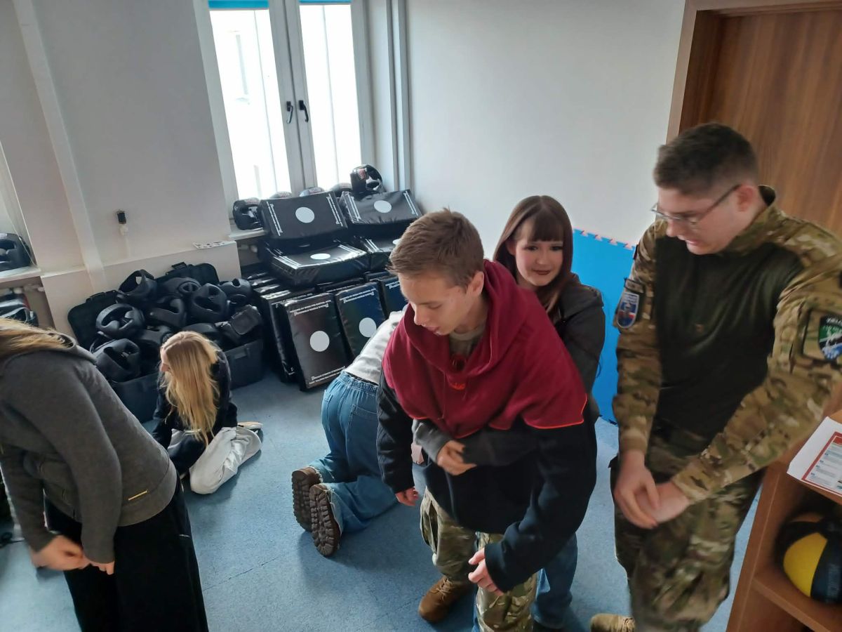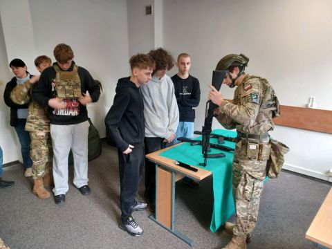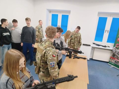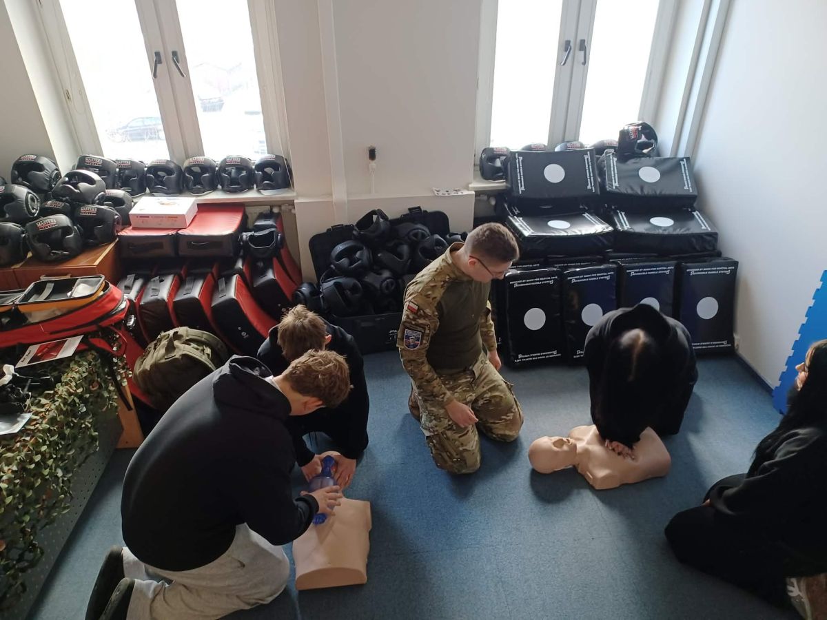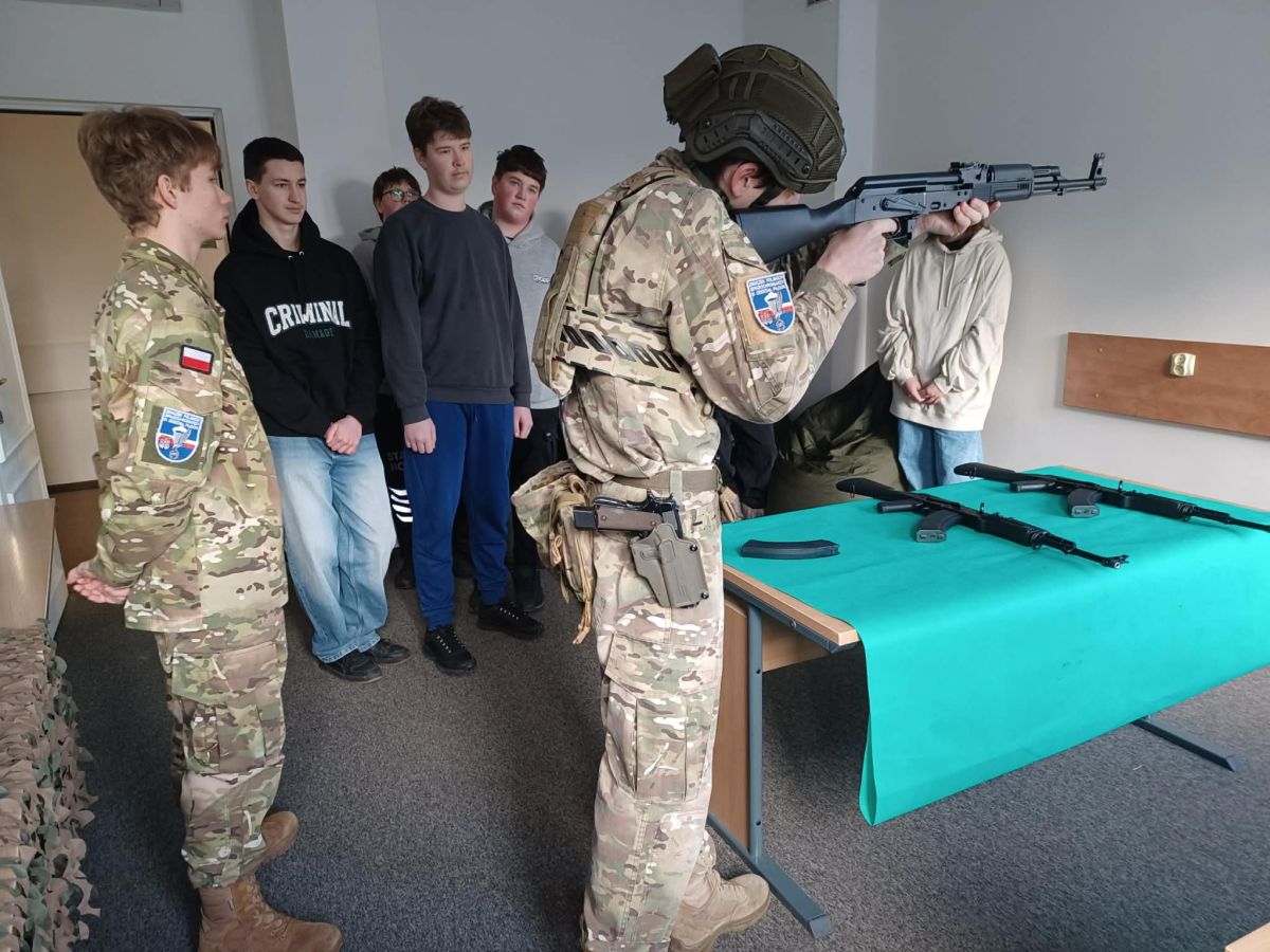 Uczniowie kl. VIII a uczestniczyli w ciekawych zajęciach dotyczących treści z zakresu edukacji dla bezpieczeństwa, które odbyły się w I Liceum Ogólnokształcącym CN-B w Kielcach. Zajęcia zostały zrealizowane w formie teoretyczno - praktycznej i obejmowały zarówno zagadnienia z zakresu pierwszej pomocy, jak i elementy przygotowania strzeleckiego.