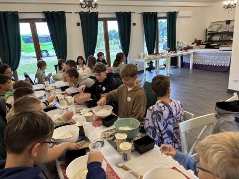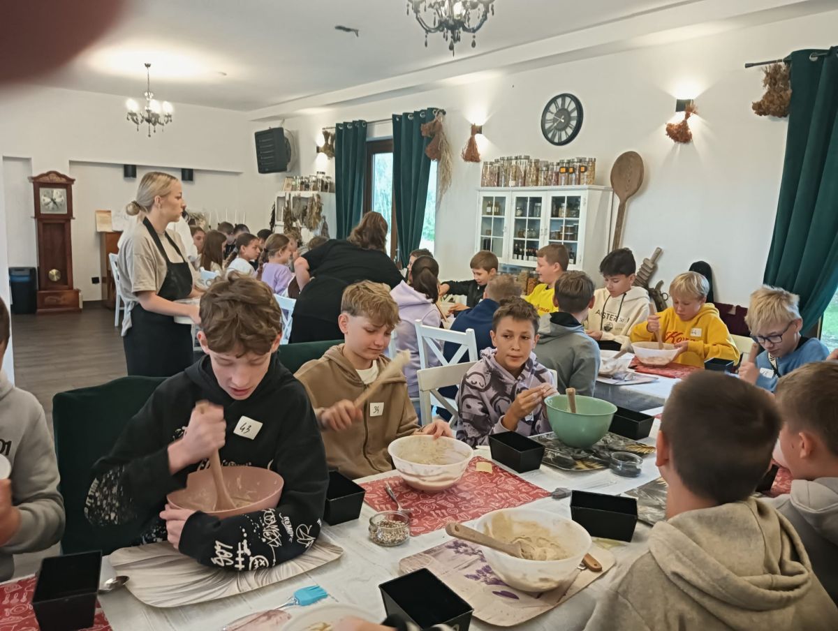 W dniu 29 września klasy 6a, 6b i 7b wybrały się do agroturystyki „Głuchowskie Specjały” w Rakowie. Uczniowie uczestniczyli w warsztatach pieczenia chleba. Pyszny chlebek, który samodzielnie wykonali zabrali ze sobą do domku. Oprócz tego na uczniów czekała do zwiedzenia zagroda ze zwierzątkami - króliki, kozy oraz atrakcje na świeżym powietrzu - gry i zabawy ruchowe.