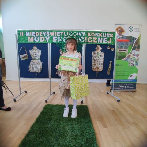 Z radością informujemy, że Natalia Nowakowska z klasy II a dobyła wyróżnienie w II Międzyświetlicowym Konkursie Mody Ekologicznej. Nasza uczennica zaprezentowała niezwykłą kreatywność, łącząc dbałość o Planetę z modową pasją.