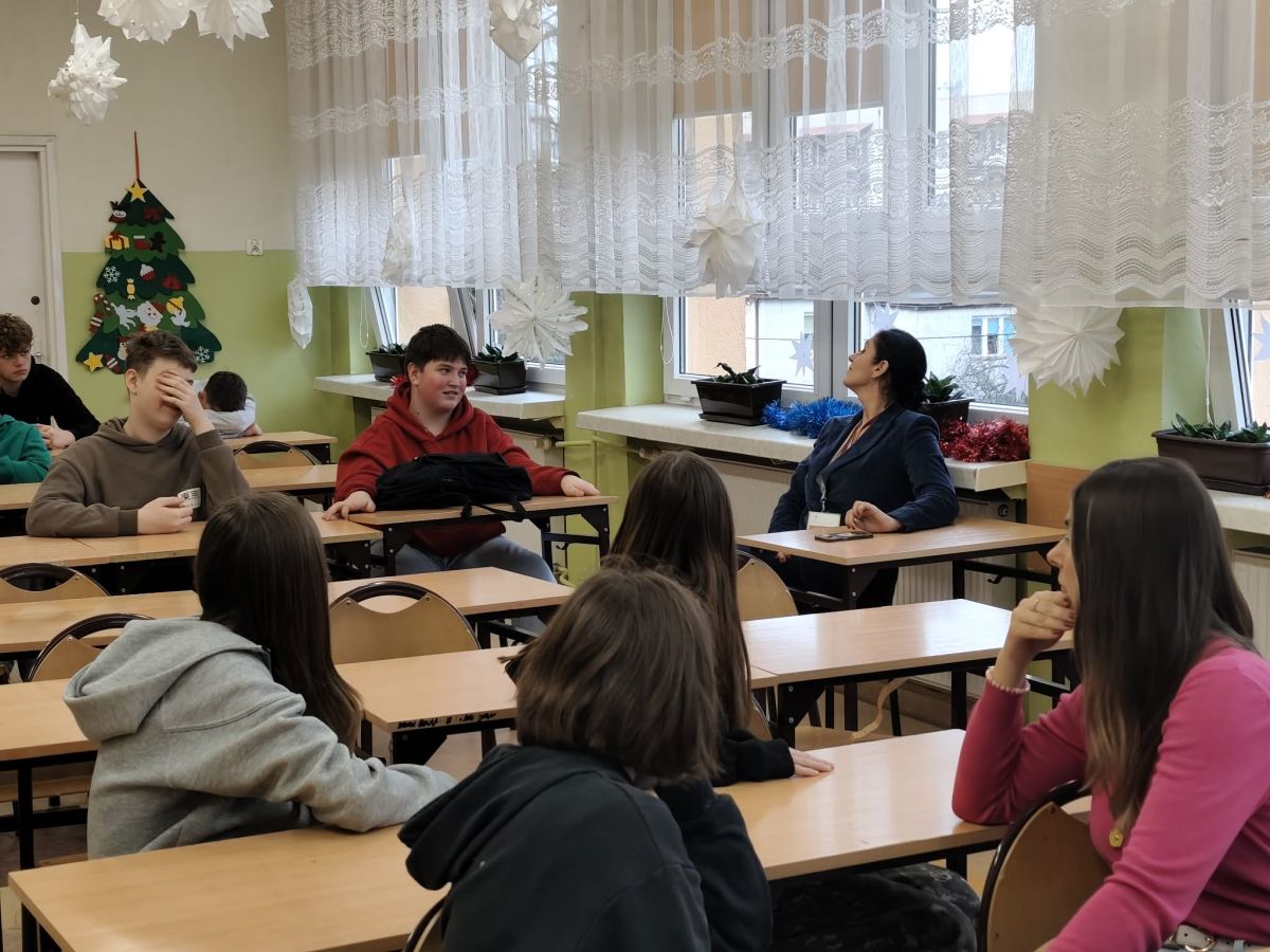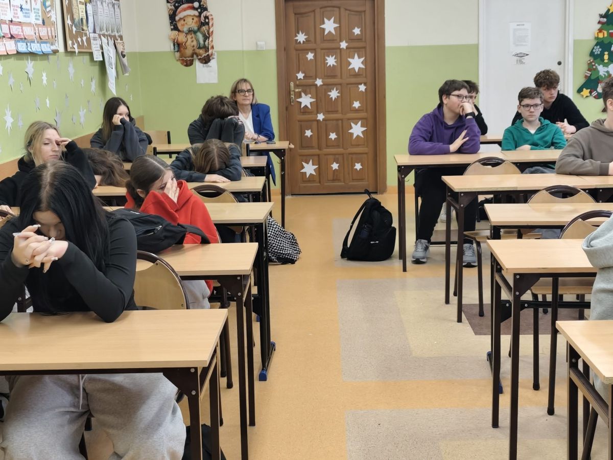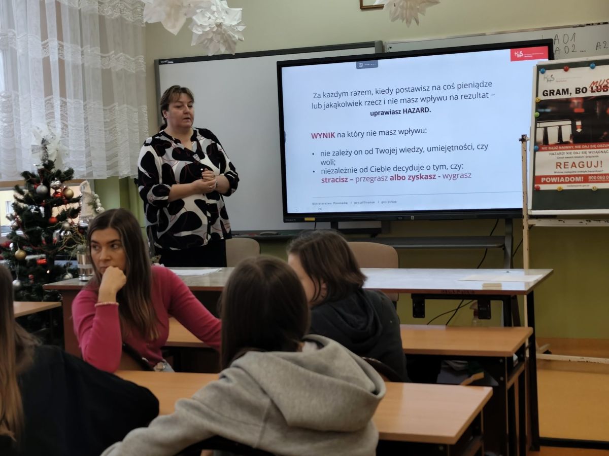 W dniu 11.12.2025r. eksperci Świętokrzyskiej Krajowej Administracji Skarbowej przeprowadzili w klasie 7a i 8a lekcję pt. „Hazard, nie daj się wciągnąć”.