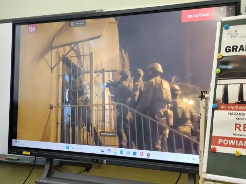 Urozmaiceniem lekcji były ciekawe prezentacje oraz filmy z akcji KAS w zakresie zwalczania nielegalnego hazardu (zajęcie automatów i innych przedmiotów przestępstwa).