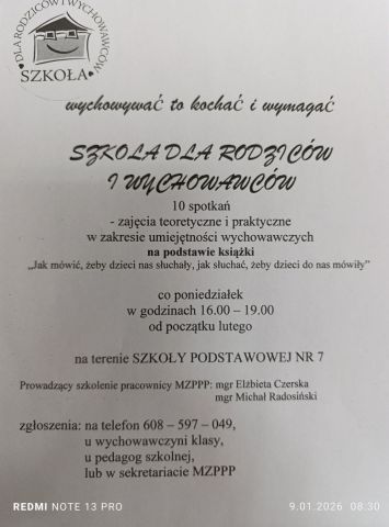 Data publikacji: 14.01.2026 Serdecznie zapraszamy do udziału w III edycji Szkoły dla Rodziców i Wychowawców.