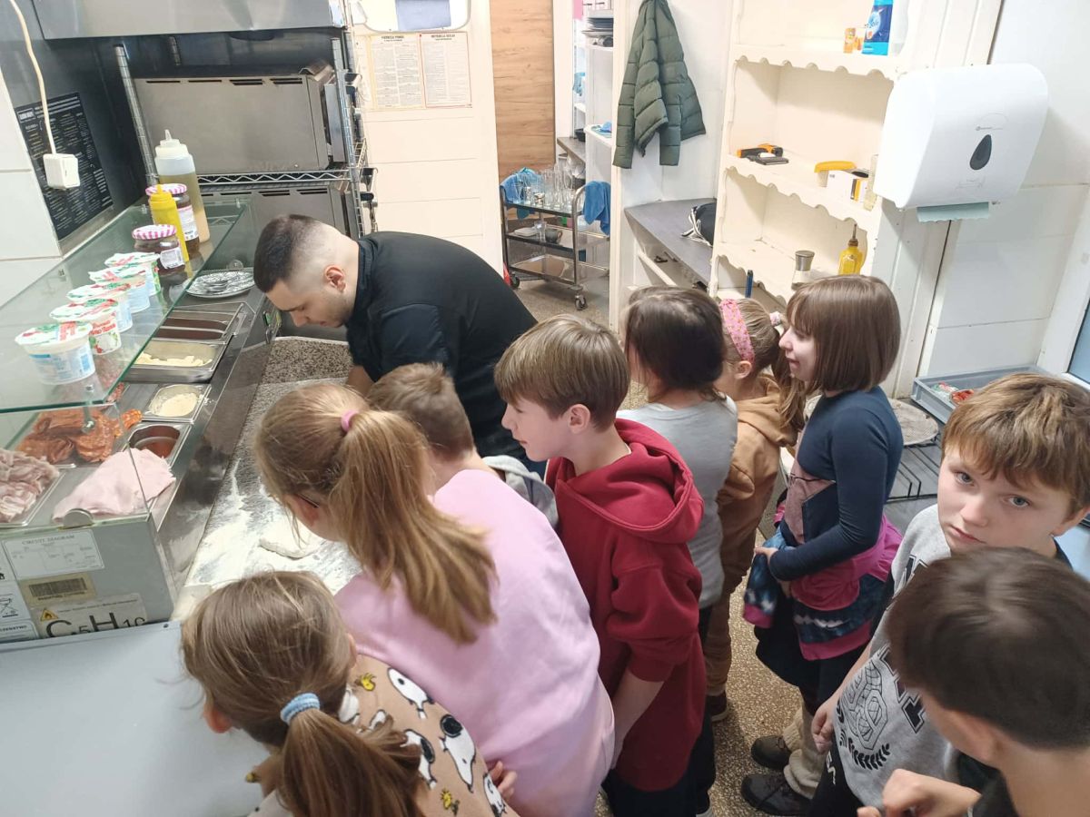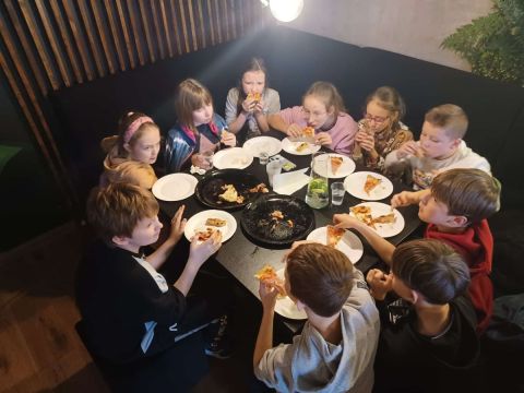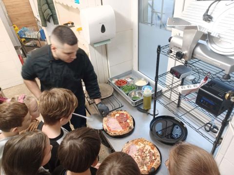 Uczniowie klasy IV a podczas wyjścia mikołajkowego zwiedzili Muzeum Hammonda oraz uczestniczyli w warsztatach kulinarnych w pizzerii "Głodna Małpa", w której mogli poznać smaki różnych rodzajów włoskiej pizzy.