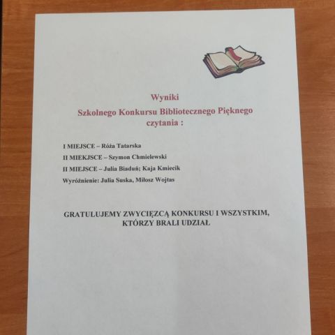 Wyniki Szkolnego Konkursu Głośnego Czytania