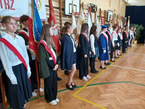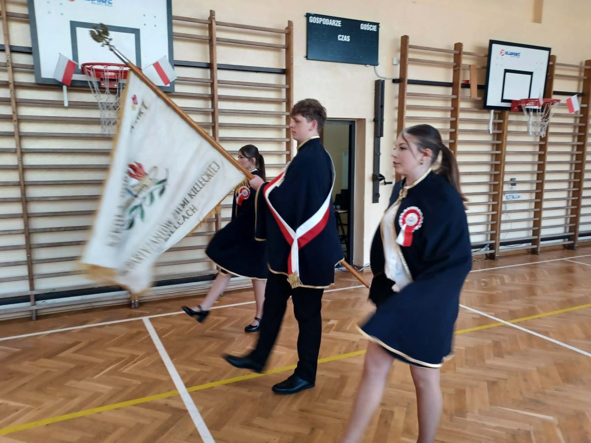 Dnia 17 kwietnia 2026 r. nasza szkoła miała zaszczyt gościć uczestników XV Międzyszkolnego Turnieju Pocztów Sztandarowych, którzy prezentowali swoje umiejętności w zakresie musztry i ceremoniału pocztów. Klasyfikacja Turnieju - szkoły podstawowe: I miejsce - Szkoła Podstawowa w Łopusznie, II miejsce - Szkoła Podstawowa nr 7 w Kielcach, III miejsce - Zespół Szkół w Kostomłotach, wyróżnienie - Szkoła Podstawowa nr 27 w Kielcach. Szkoły Ponadpodstawowe: I miejsce - Zespół Placówek Oświatowych w Kielcach, II miejsce - Liceum Ogólnokształcące w Chęcinach, III miejsce - Powiatowy Zespół Szkół w Łopusznie, wyróżnienie - Zespół Szkół w Sichowie Dużym. Serdecznie dziękujemy wszystkim pocztom za udział i gratulujemy zwycięzcom.