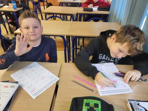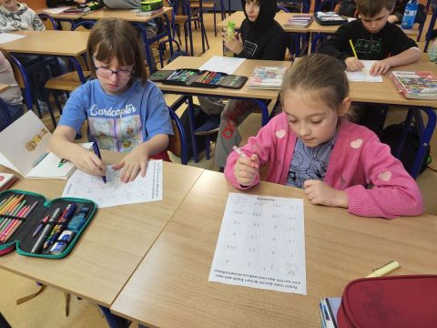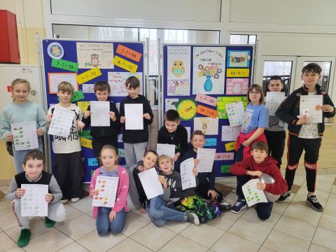 Uczniowie klas 4–8 mieli możliwość uzyskania tytułu Eksperta Tabliczki Mnożenia, natomiast podczas zajęć matematyki rozwiązywali różnorodne zagadki i łamigłówki matematyczne, rozwijając swoje umiejętności logicznego myślenia.